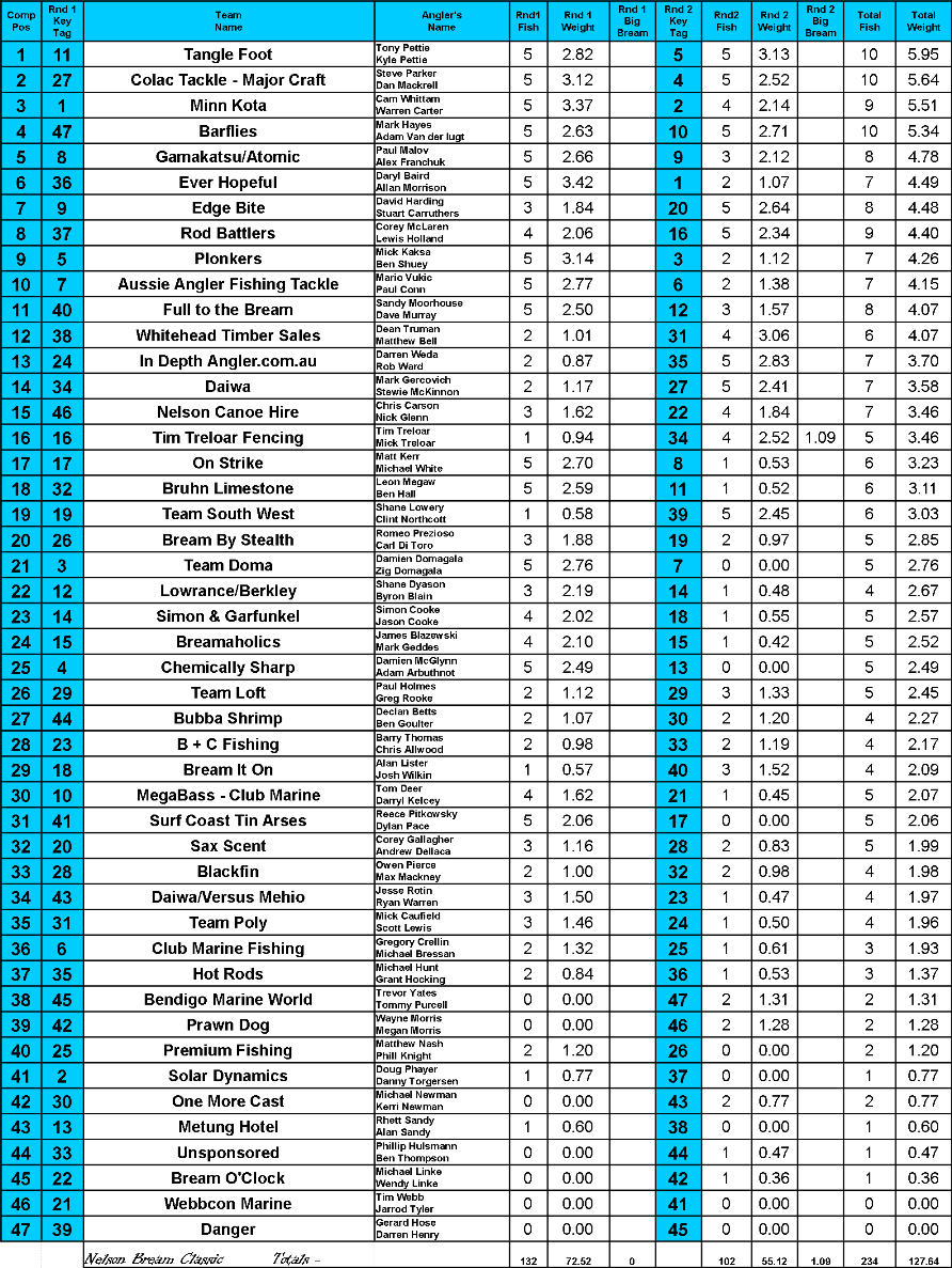 With only one qualifying rnd left for the 2014 Vic Bream Classic Series all eyes are starting to turn to the Club Marine Team of the Year Points chase and who will make the Grand Final. For all the details, team standings and tournament details visit www.vicbreamclassics.com.au and follow us on Facebook at www.facebook.com/vicbreamclassics