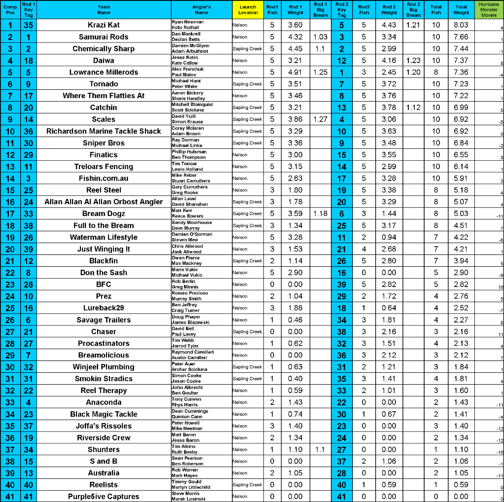 The Hurricane Monster Movers Prize went to Team BFC Rob Berlin and Greg Minnis who moved 16 places up the leader board with a great 5/5 bream bag weighing 2.82kg