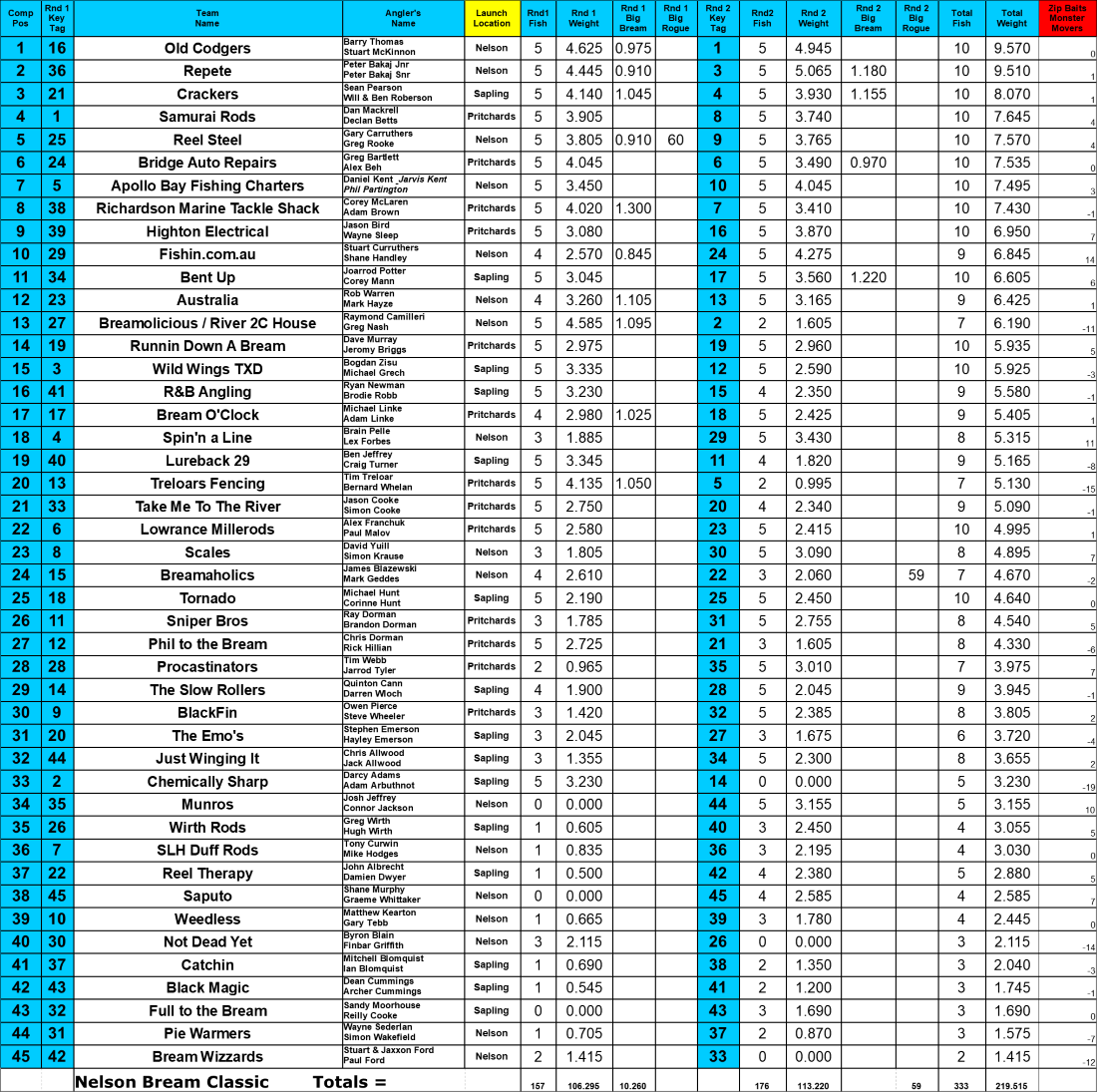 The Zip Baits Monster Movers Prize went to Team Fishin.com.au Stuart Carruthers and Shane Handley who weighed in a quality bag on Day 2 of 5/5 bream bag weighing 4.275kg moving them 14 places up the leader board to finish in 10th position.