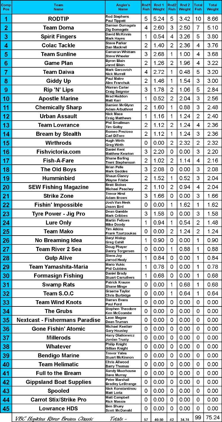 The weekend of the 19th and 20th of June saw 45 teams converge on the Hopkins River in Warrnambool for the Hooked On Rods 'N' Reels Bream Classics the 4th Qualifying round of the 2010 Humminbird Bream Classics Series. In previous years the Hopkins River has produced varying results for teams and this year was to be no different with challenging conditions confronting all anglers. It was Team Rod-Tip's Rod Stephens and Paul Tippett who would find the honey hole on day one that would give them the victory in grand style.