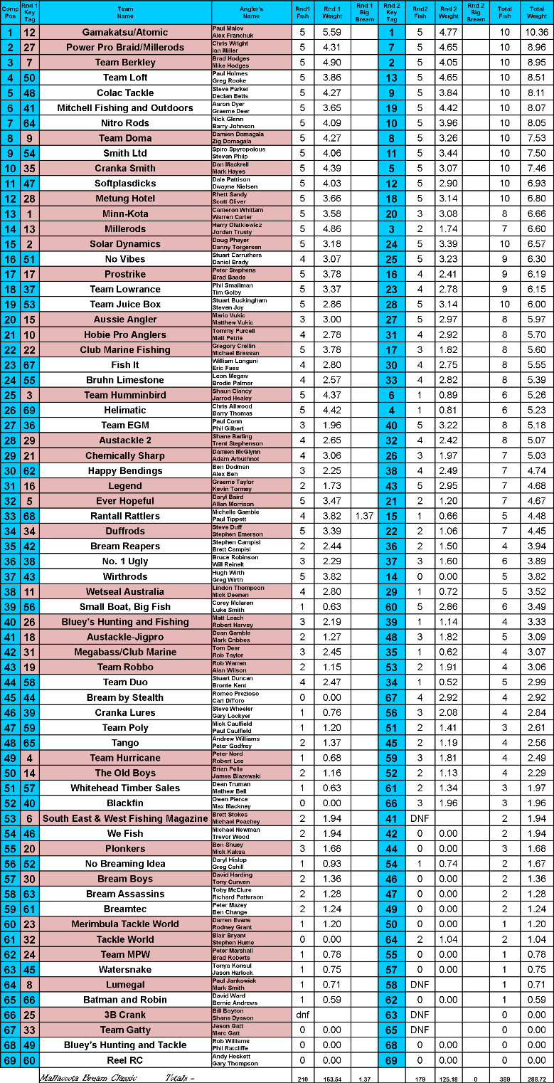 If taking out the victory and winning the Maria Lures Best Bag for the weekend wasn't enough the win also gave Team Gamakatsu/Atomic a crucial 100 points in the Club Marine Team of the Year race and with a total of 300 points for the season the boys were also crowned the 2012 Club Team of the Year. They will now go into the 2013 Humminbird Bream Classic Series free of charge and will leave from position 1 in all 5 qualifying rounds which I'm sure will make Team Gamakatsu/Atomic's Paul Malov and Alex Franchuk a force to be reckoned with in 2013. Next stop will be the 6th and final tournament for the 2012 Humminbird Bream Classic Series and it's the big one the Grand Final. The top 50 teams from this years series will head to Metung to see who is the best and can take claim to be named the 2012 Humminbird Bream Classic Series Champions.