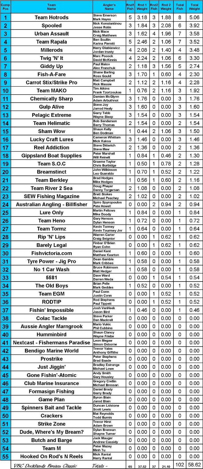 After the first days competition Team Hot Rod's had weighed in a very respectable 5/5 bream for 3.18kg giving them the lead and making them one of only two teams to weigh in 5 fish for the day. The other highlight for Day 1 came with Barry Thomas from Team Helimatic landing the Eco-Gear Big Bream which came in at just over the kilo mark.