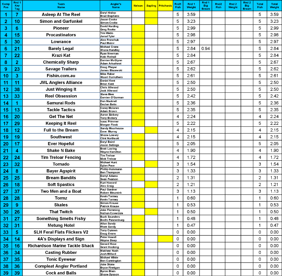 2nd Place went to Team Simon and Garfunkel's Jason Cooke and Simon Cooke who weighed in 5/5 bream for 3.23kg