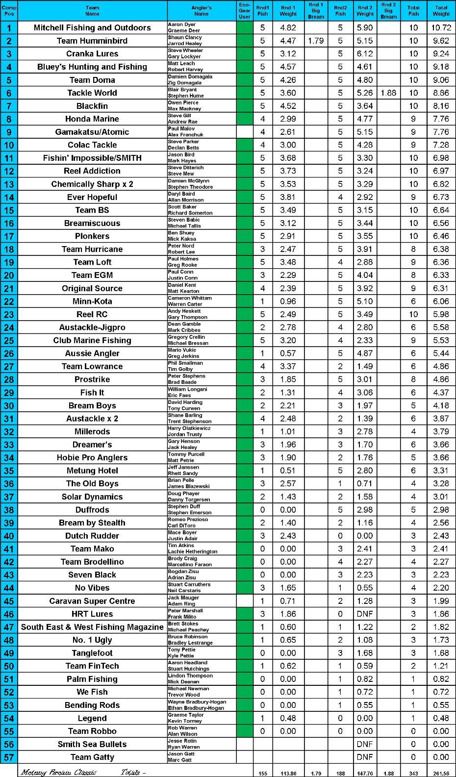 With the Maria Lures best bag set at 4.82kg by Mitchell Fishing and Outdoors and the Eco-Gear Big Bream being set by Team Humminbird at 1.79kg on day 1 it looked as though the best fishing had been experienced on Day 1 or so we thought. Day 2 started in similar fashion to day 1 with every boat charging to the river mouths. From reports coming in from the teams in the Mitchell flats they were all experiencing some of the most memorable fishing action of all time. One angler commented that at one stage all that could be heard was anglers reels screaming as numerous boats were all hooked up to quality fish. For Team Mitchell Fishing and Outdoors it was business as usual heading to the mouth of the Mitchell again. "We decided to start again at the Mitchell mouth and had our five fish by 8am on a mixture of Chubbies and Bloodworm Wrigglers. As the fish kept biting on both lures we continued to upgrade fish at the same location until about 12.30 when we felt we had enough in the well to hopefully secure victory. It was evident by the quality of the bags that were coming on day 2 that the bream had really turned on overnight. The Maria Best Bag of 4.87kg from Day 1 was smashed by Team Team Cranka Lures Steve Wheeler and Gary Lockyer with a cracking bag of 5/5 bream for 6.12kg, but it was Eco-Gear Big Bream that shocked the crowd. Sitting at 1.79kg overnight it was all but guaranteed to Team Humminbird until the boys from Team Tackleworld dropped a monster on the scales that weighed an impressive 1.88kg astonishing the crowd.