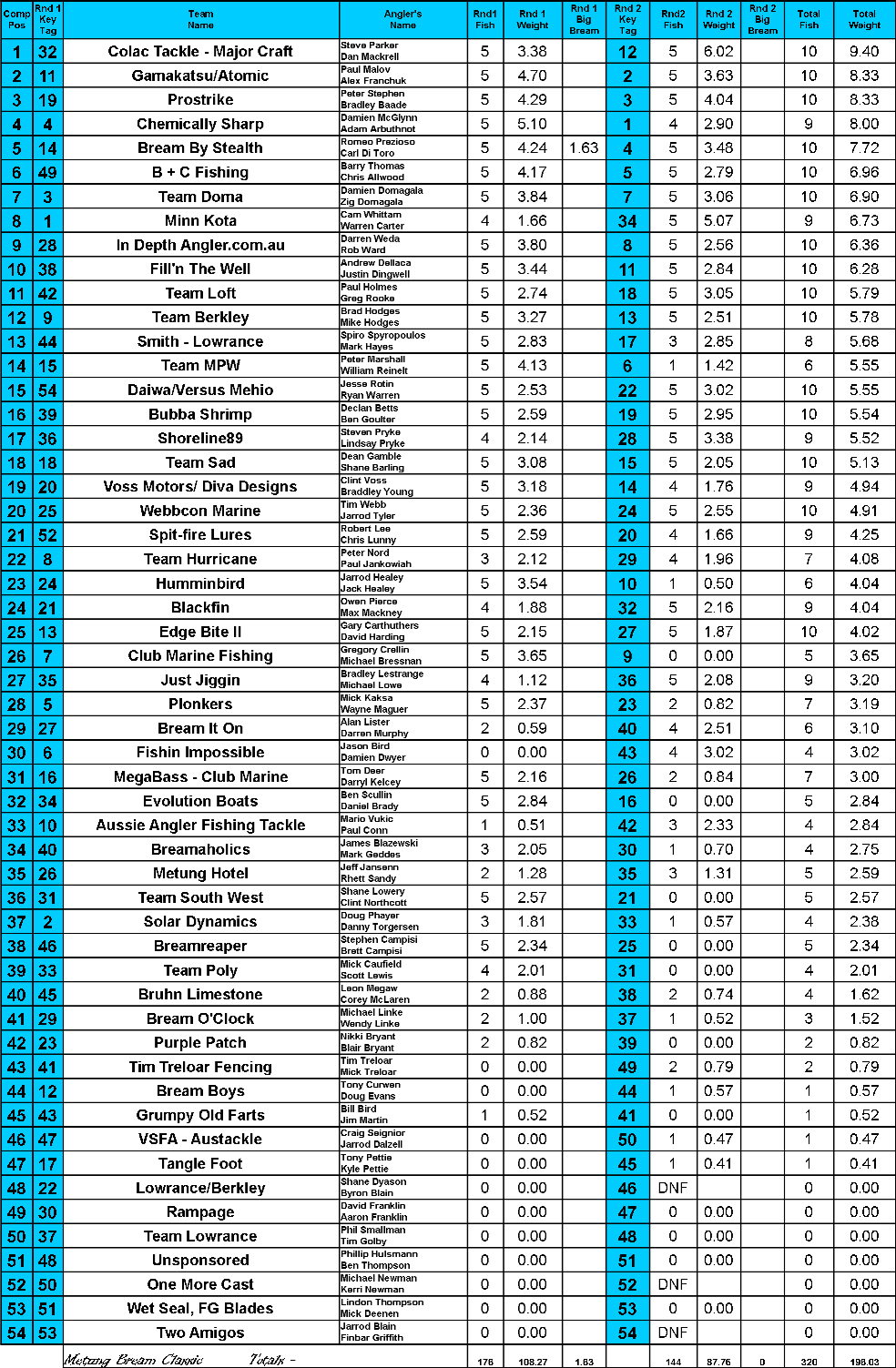 From 12th to 1st for Team Colac Tackle/Major Craft at the Club Marine East Gippsland Bream Classic